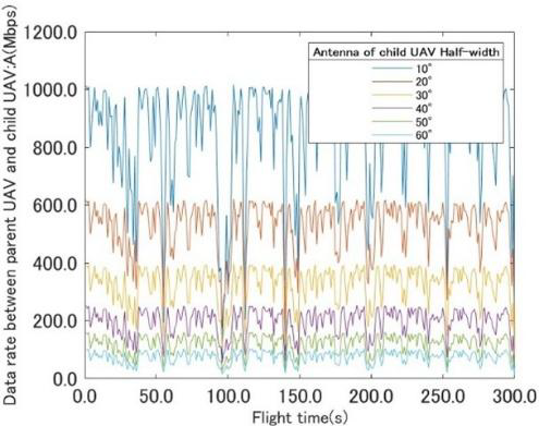 Fig.14 Data rate trends between UAVs under different antenna configurations.