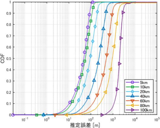 Fig.15 CDF of localization accuracy using HAPS-based radio source estimation.
